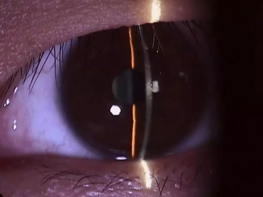 1.檢查時把裂隙燈調(diào)為裂隙光